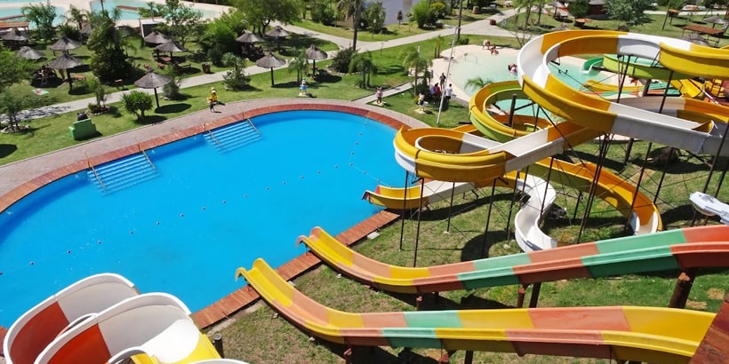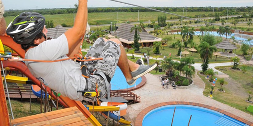 Atracciones: Piletas pasivas, parque aéreo, botes hidropedales, tirolesa, piletas con toboganes y cabalgatas.